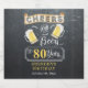 Celebrate your 80th Birthday in style with this rustic "Cheers and Beers" chalkboard vintage barroom look design. Composite design by Holiday Hearts Designs (rights reserved).