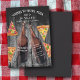 A watercolor beer bottle and pizza illustration design. A retro look beer themed design perfect for adult pizza and beer birthday parties. An ideal illustration for anyone who loves beer, pizza, brewery themes, BBQ's, summer parties and beer alcohol drinks.