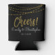 Cheers Black and Faux Gold Foil String Lights Wedding Can Cooler for a Elegant Wedding Reception or Rehearsal Dinner. The name and date can be updated on this Can Cooler.