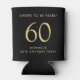 Raise a toast at your 60th birthday party with this black can cooler featuring "Cheers to 60 Years" and your name in simple light gold lettering.