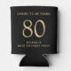 Raise a toast at your 80th birthday party with this black can cooler featuring "Cheers to 80 Years" and your name in modern gold lettering.