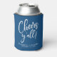 Give your wedding guests, bridal party and groomsmen a customised keepsake souvenir of your special day. This modern classic blue can cooler wedding party favour features "Cheers Y'all!" in a stylish white script. Add your first names and wedding date.