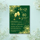 Cheers To 80 Years! Modern and stylish design features elegant golden floral, champagne glasses, script font and confetti. Personalise with your own details. Can be customised to any age.