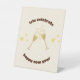It is sturdy than I expected. Was worried about the material being flimsy but it is not. It is printed on some sort of plastic material. It should serve well at our wedding as long as wind isn’t too bad. Otherwise we will put some paper weights behind it and should be fine.