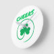Cheers Clover Shamrock Green an White Elegant Round Clock