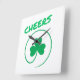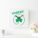 Cheers Clover Shamrock Green an White Elegant Square Wall Clock