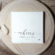 These simple, modern cocktail napkins are perfect for wedding receptions, rehearsal dinners, or engagement parties. Featuring "Cheers" in a stylish modern script, the couple's names, wedding date, and a small heart in the corner, these napkins add a personal touch to any celebration. Printed in black ink on crisp white napkins, they are a chic and elegant detail for your event.