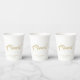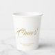 Cheers custom gold and white calligraphy script Wedding Paper Cups.