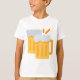 100% cotton so perfect for summer, It is a nicely designed t-shirt, the fabric is soft and the seams finished well, the body of the t shirt has no side seams. I bought a medium size for my two grandsons, aged 9 and 8 it will be slightly big on them but I would rather that than too small