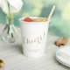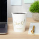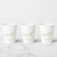 Elegant chic Gold and white Custom script calligraphy Text Wedding Paper Cups.