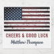 Add the finishing touch to your military going away party with these military design american flag wine labels and party supplies. USA American flag design. This rustic American Flag party wine labels is perfect for a soldiers going away party, military deployments send off, military welcome home celebration, military graduation, and military retirements. Personalise this american flag invitation with your soldiers name and person message. See our collection for matching military retirement gifts, military graduation gifts,party favours, and supplies. COPYRIGHT © 2021 Judy Burrows, Black Dog Art - All Rights Reserved. Cheers & Good Luck Soldier Going Away Party Beer Bottle Label
