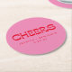Cheers Groovy Pink Red Typography Names Wedding Round Paper Coaster