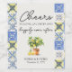 Lemon Grove wedding wine bottle labels, for your rehearsal dinner, wedding reception or wedding party gifts. The labels are personalised and lettered with "cheers to love laughter and happily ever after". Design features a lemon tree, lemons and a border of blue and yellow Mediterranean tiles. Perfect for a lemon wedding theme, Italian inspired wedding, rustic Mediterranean villa aesthetic, blue and yellow wedding colours or an outdoor wedding at any time of the year. For co-ordinating invitations, stationery, day of event and table décor, games and wedding signs, please browse my Lemon Grove Wedding Collection or message me to add any additional items you need.