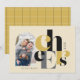 These 7" x 5" holiday photo greeting cards feature the greeting, "Cheers," in large black, gold and grey on a cream background. The back has a coordinating geometric flower pattern. Customise with your favourite photo, name and year.