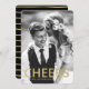 Celebrate the New Year with your friends and family by sending them a modern New Year's photo card. The stylish photo card features the word "Cheer" in a faux gold foil font and placeholders for text and a photo. The back of the card features a black background with faux gold foil hand drawn stripes. The black colour can be changed to a colour of your choice with the Customise It tool.