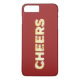 "Cheers" written in vintage gold marquee lights accents this iPhone 7 Plus Case on a cranberry red background, making a festive Christmas gift.