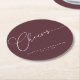 Cheers Minimal Burgundy Script Custom Wedding Round Paper Coaster