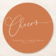 Cheers Minimalist Burnt Orange Script Custom Wedding Round Paper Coaster