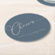 Cheers Minimal Dark Blue Script Custom Wedding Round Paper Coaster
