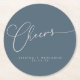 Cheers Minimalist Dark Dusty Blue Script Custom Wedding Round Paper Coaster
