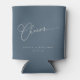 Cheers Minimal Dusky Blue Script Custom Wedding Can Cooler