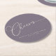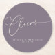 Cheers Minimalist Dusty Purple Script Custom Wedding Round Paper Coaster