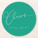 Cheers Minimal Emerald Script Custom Wedding Round Paper Coaster