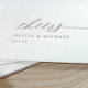 Modern and romantic, these elegant “cheers” napkins feature graceful calligraphy paired with romantic, timeless typography. The metallic-look text adds a touch of sophistication without overpowering your décor, making them perfect for weddings, engagement parties, or cocktail receptions. Personalised with the couple’s names and date, these napkins bring a refined finishing touch to any celebration with their simple, elevated design.