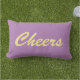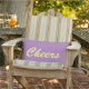 This fun purple outdoor cushion is decorated with a cheers written in a tropical yellow font, making it the perfect summertime accessory for the beach house, pool house, cottage, patio, deck or pool area. This pillow coordinates perfectly with a large selection of other pillows in the Outdoor Pillows Collection.