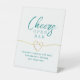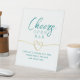 Elegant minimalist simple calligraphy white and teal wedding Open Bar tabletop sign with gold rope heart and modern script.