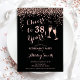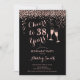 Elegant retirement party invitation for men or women. Invite card in black and faux glitter rose gold. Features classy typography script font, champagne glasses and confetti. Cheers to retirement! Personalise with your own details. Can be customised to show any year. Printed Zazzle invitations or instant download digital template. Perfect for a stylish retirement celebration.