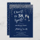 Elegant retirement party invitation for men or women. Invite card in navy and faux glitter silver. Features classy typography script font, champagne glasses and confetti. Cheers to retirement! Personalise with your own details. Can be customised to show any year. Printed Zazzle invitations or instant download digital template. Perfect for a stylish retirement celebration.