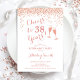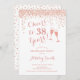 Elegant retirement party invitation for men or women. Invite card in white and faux glitter rose gold. Features classy typography script font, champagne glasses and confetti. Cheers to retirement! Personalise with your own details. Can be customised to show any year. Printed Zazzle invitations or instant download digital template. Perfect for a stylish retirement celebration.