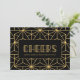 Cheers! Travel back to the roaring twenties with this vintage art deco inspired stationery. Simple yet classy, black and gold retro typography, fully customisable if you wish to change the colour of the background or the text. You can also easily remove the background design.