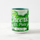 Toast with the Cheers St Pats Foam Mug, a top holiday POD for party impulses! Custom quote on abstract foam for fun drinks. Ceramic 15 oz, sustainable. Events or home, trends. Share cheers! Grab bubbly!