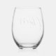 This is a minimalist customised black white typography cheers stemless wine glass specially design for your wedding party.