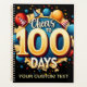 Celebrate 100 days of school with this cheerful and festive design! Featuring colourful balloons, party hats, and a celebratory message, it's the perfect way to mark this milestone. Personalise it with your message.