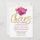 A gorgeous 40th birthday 'cheers to 40 years' party invitation. This fabulous invitation features hot pink heart shaped balloons on a gold confetti background. Easy to personalise with your own 40th birthday party celebration details.
