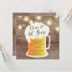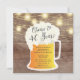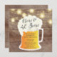 Cheers to 40 years birthday invitation featuring a beer mug set on a rustic wood background with hanging mason jar lights