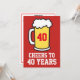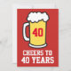 Cheers To 40 Years beer party invitation for a 40th Milestone birthday. It's a red background with an image of a large beer. Great for a beer lover turning forty. Raise a toast to someone celebrating 40 years!