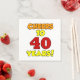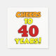 Cheers To 40 Years colourful party napkins. Red and yellow colours. Great for a 40th milestone birthday party.