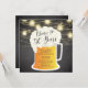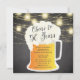 Cheers to 50 years birthday invitation featuring a beer mug set on a chalkoard background with hanging mason jar lights