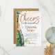 A gorgeous 50th birthday 'cheers to 50 years' party thank you card. This fabulous card features a bubbly bottle on a gold confetti background. Easy to personalise with your own 50th birthday party celebration thank you message.
