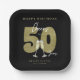 Cheers To 50 Years Black Gold Birthday Party Paper Plate