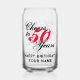 Cheers to 50 years Happy Birthday can glass with custom name. Stylish typography template with personalised name.. Trendy gift idea for party or event. Double sided print. Colours can be changed.