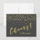 NewParkLane - Glamourous Postcard, with 'Cheers to 50 years!' in elegant brush/ script typography in faux gold, with gold confetti against a dark grey background. Fun and elegant design for any birthday, since you can alter the age easily for a personalised design. Text styles & background colour can be modified to fit your needs.