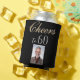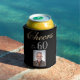 Cheers to 60 Photo 60th Birthday Can Cooler. Trendy typography in white and golden colours on a black background. Personalise the cooler with your photo and the age number.