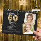 Celebrate a 60th birthday with these elegant and festive party invitations featuring the title CHEERS TO 60 YEARS with faux metallic gold balloon numbers and modern script typography, 2 photos and gold streamers and confetti in your choice of background colour (shown in black). ASSISTANCE: For help with design modification or personalisation, transferring the design to another product or if you would like coordinating items, contact the designer BEFORE ordering via Zazzle Chat or email makeitaboutyoustore@gmail.com.