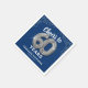 Elegant sixtieth birthday party napkins featuring a stylish blue background that can be changed to any colour, silver sparkly glitter, the saying "cheers to 60 years" using sixty silver hellium balloons, their name, and the date of the celebration.
