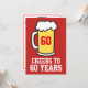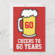 Cheers To 60 Years beer party invitation for a 60th Milestone birthday. It's a red background with an image of a large beer. Great for a beer lover turning sixty. Raise a toast to someone celebrating 60 years!